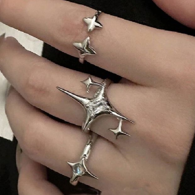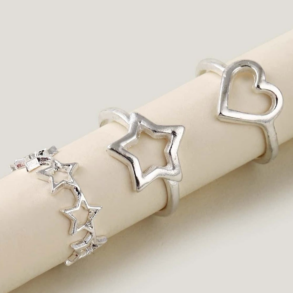 Pack 3 piezas acero inoxidable anillos de estrellas