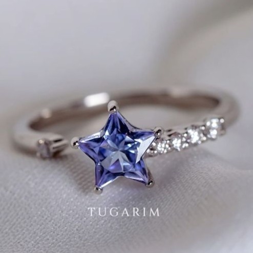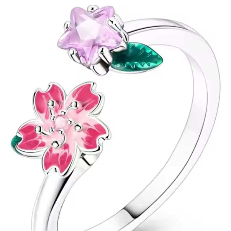 Anillo plata S925 flor rosada con estrella diamante de imitación