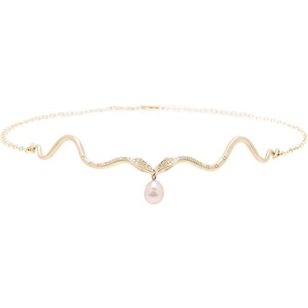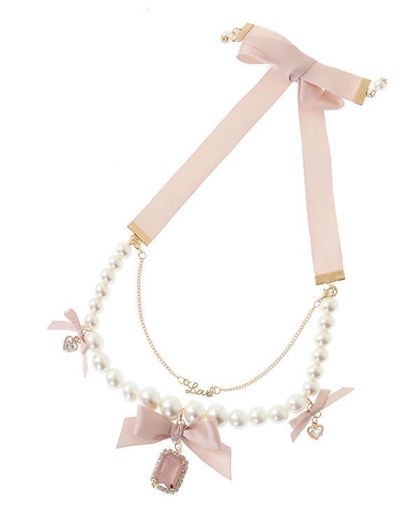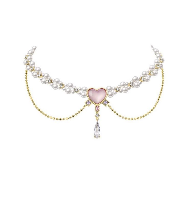 Collar con perlas y oro laminado con cristal de imitación y corazón al centro