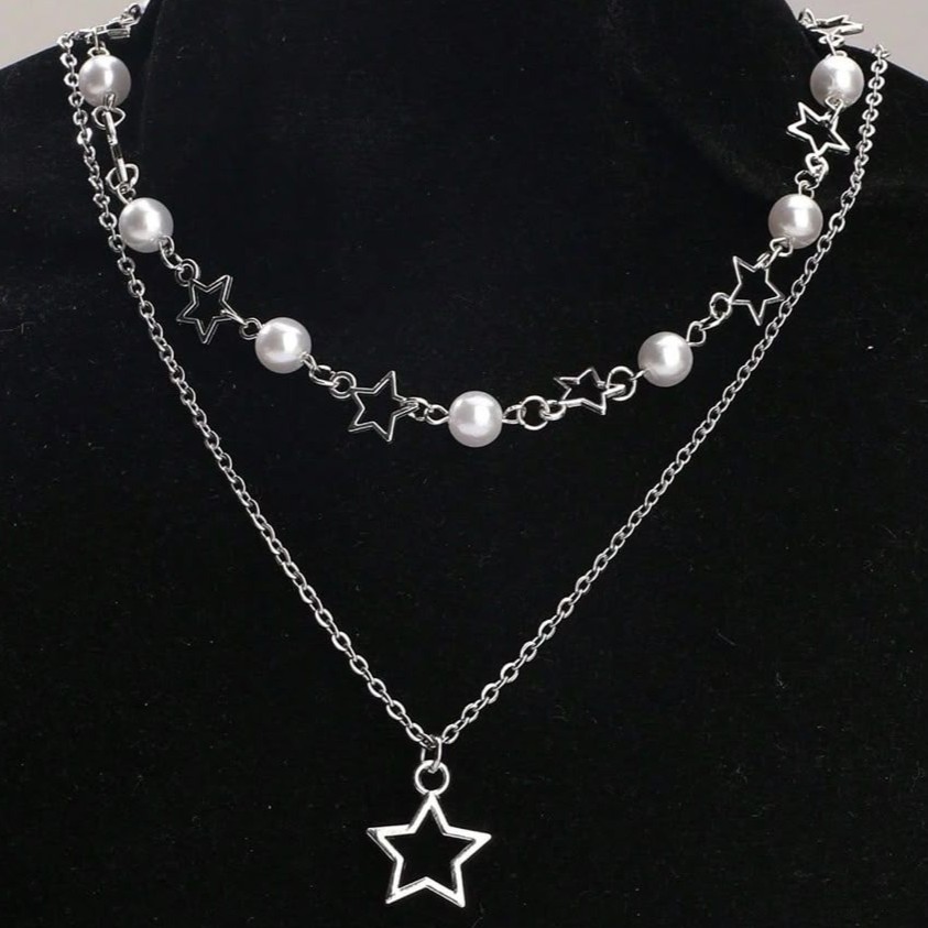 Duo collares acero inoxidable perlas con miniestrellas y cadena con estrella hueca