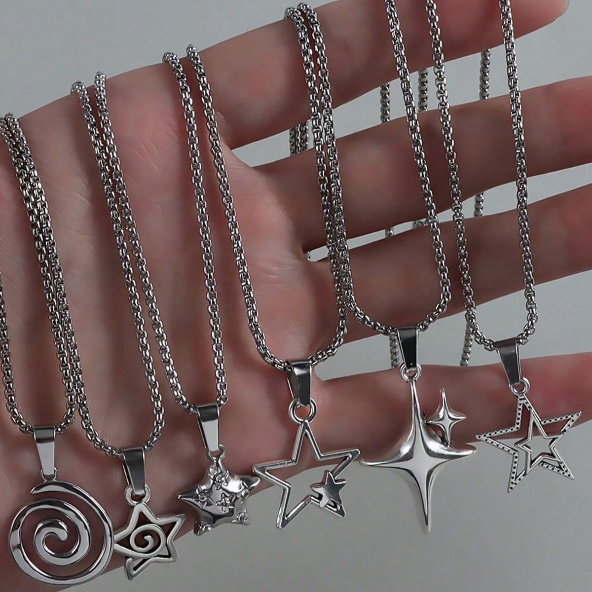 Pack 6 piezas laminado plata S925 espiral, estrella espiral, estrella globo, estrella hueca, estrella 4 picos y estrella doble